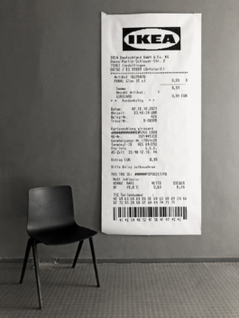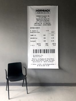 Nun kommt dieses Blumenstillleben weder prachtvoll noch malerisch-illusionistisch daher, sondern konterkariert durch die Überhöhung eines Kassenzettels gezielt die Discounter-Mentalität in unserer Gesellschaft. Gleichzeitig hinterfragt er mit dieser Konzept-Arbeit auch den Kunstmarkt sowie den Stellenwert der Malerei selbst. Denn auf Auktionen erzielt Malerei noch immer die höchsten Preise.