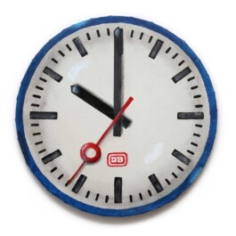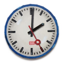 Die gemalten Uhren erinnern an das kollektive Gedächtnis mehrerer Generationen: das Warten auf dem Bahnsteig, die sich drehenden Zeiger, das gleichmäßige Ein- und Ausfahren der Züge – wie das Pulsieren von Blut durch einen Organismus. Sie stehen für eine Zeit, in der Fortschritt mit Verlässlichkeit und Struktur gleichgesetzt wurde – und in der das Bruttoinlandsprodukt zur Währung des Wohlstands wurde.